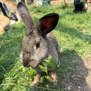 I'm a beautiful Californian, chocolate point cream. I love popcorning with my herd of sows in our piggy shed.